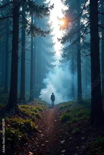 © methinee, Fototapeta premium Darkening forest floor shrouded in a veil of smoke and ash, pine forest, smoke