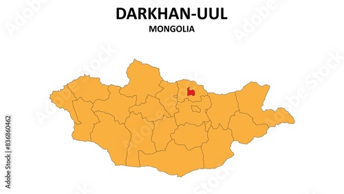 © awesome artt, Obraz premium Darkhan-Uul Map in Mongolia. Vector Map of Mongolia. Regions map of Mongolia.