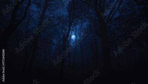 Fototapeta premium Darkness enveloping a forest, highlighting isolation