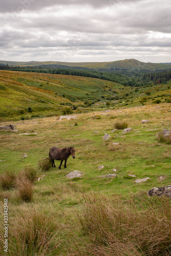 © Richard, Fototapeta premium Dartmoor pony with Tor in the background in Devon.