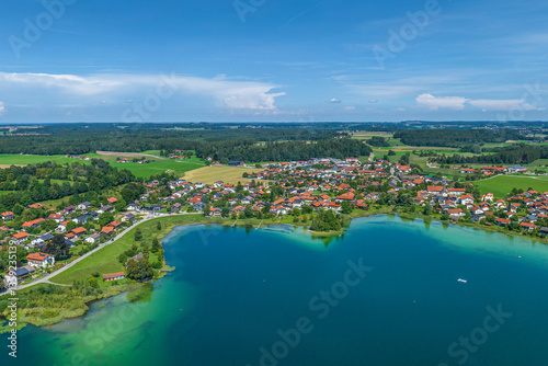 Fototapeta premium Das bayeriche Alpenvorland im Chiemgau bai Seeon aus der Vogelperspektive