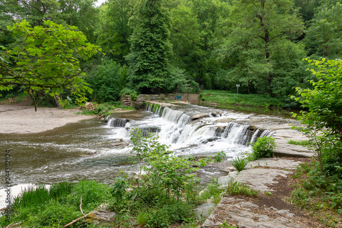 Obraz premium Das Chrysopas-Wehr in der Schwarza, Bad Blankenburg, Thüringen, Deutschland