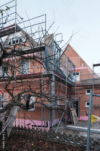 © Lichtblick, Obraz premium Das Dach des Neubaus wird bald eingedeckt