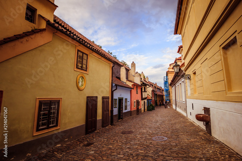 Obraz premium Das Goldene Gässchen (Zlatá ulička) auf dem Areal der Prager Burg in Sommer