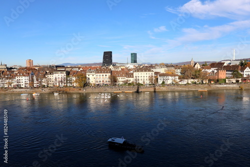 Naklejka premium Das Rheinufer von Kleinbasel an einem sonnigen Herbsttag