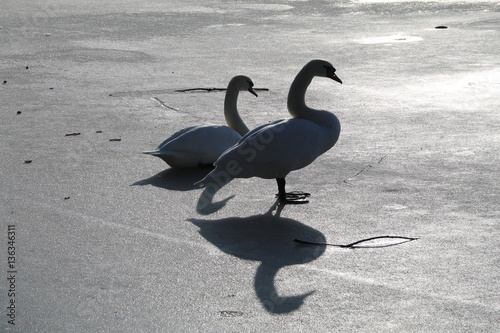 © T.H., Obraz premium Das Schwanenpaar auf dem Butzer See in Berlin-Kaulsdorf