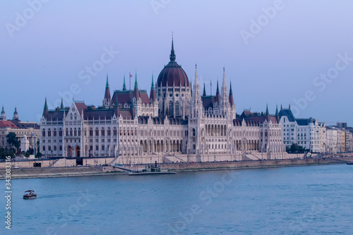 Fototapeta premium Das ungarische Parlament bei Abenddämmerung im Sommer