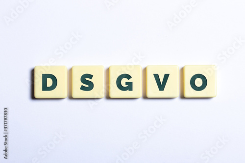Fototapeta premium Das Wort DSGVO in Buchstaben auf weißem Hintergrund