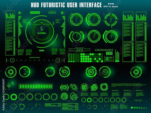 Obraz premium Dashboard display virtual reality technology screen. HUD futuristic green user interface, target