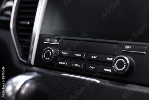 Fototapeta premium Dashboard inside of modern black car, closeup
