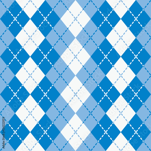 Fototapeta premium Dashed Argyle seamless pattern in blue and white.