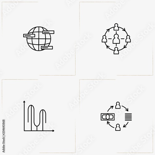 © Orkhan, Fototapeta premium Data Analitic line icon set with connection data, graph and worldwide data