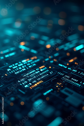 © fotoluigi868, Fototapeta premium Data analysis and programming involve working with algorithms and binary code in a technology processing environment._00001_