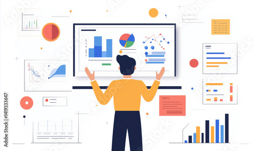 © Vergiliy, Fototapeta premium Data analysis and visualization concept with charts and graphs on screen.