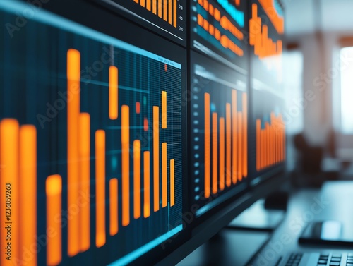 Obraz premium Data analysis on multiple computer screens.