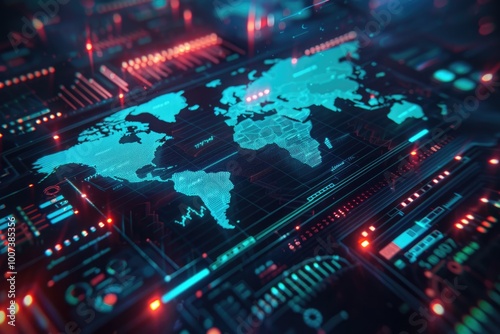 © Anjali, Obraz premium Data analysis with modern technology world map graphs icons.