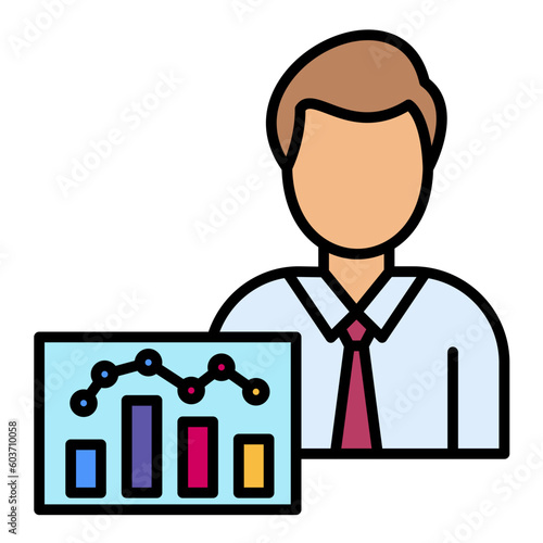 © SAMDesigning, Obraz premium Data Analyst Line Color Icon
