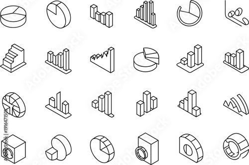 © Miss, Fototapeta premium Data analytics chart icon set isometric line vector collection featuring graphs, statistics, reports, business analysis visualization design