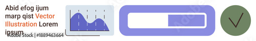 Obraz premium Data analytics, user interface design, progress tracking, validation, digital tools, productivity software. Graph with dots, progress bar checkmark icon. Data analytics and user interface design