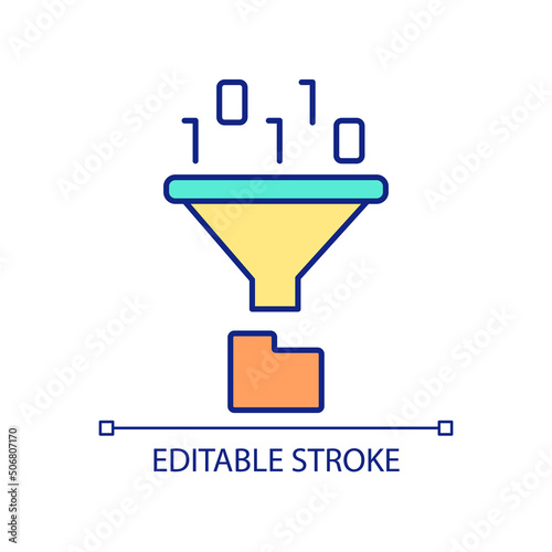 Fototapeta premium Data archiving RGB color icon. Exploring large database. Computing processes. Big data processing. Isolated vector illustration. Simple filled line drawing. Editable stroke. Arial font used