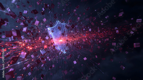 Obraz premium Data Breach Protection, Cybersecurity Attack Defense, Digital Security Shield
