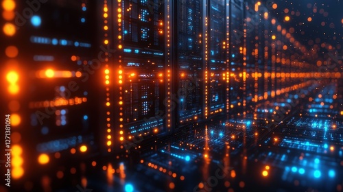 © Diegeme, Obraz premium Data Center Illuminated by Vibrant Light and Technology Patterns