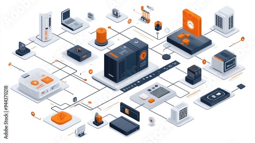 Obraz premium Data Center Network Infrastructure with Connected Devices and Cloud Computing...