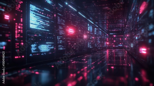 © julija, Obraz premium data center scene showcasing container orchestration platforms with kubernetes clusters surrounded by hightech visualizations and digital interfaces