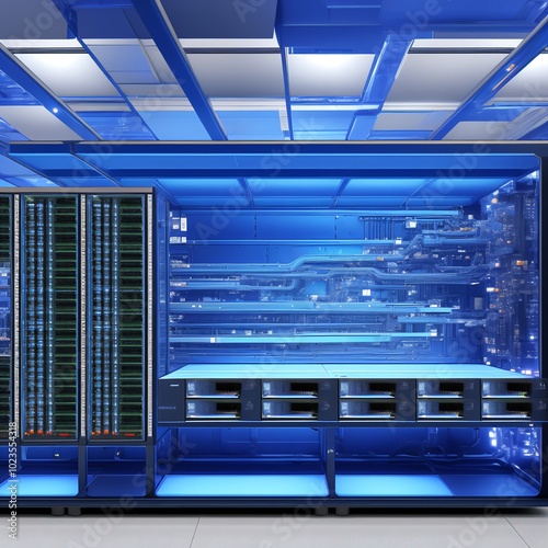 © Wire_man, Obraz premium Data center server room interior. AI generated illustration