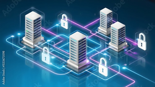 © Andefastudio, Fototapeta premium Data Center Servers with Security Locks