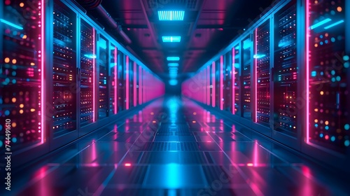 Fototapeta premium Data Center with Bright Neon Lights