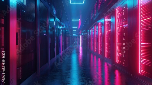 © Gefo, Fototapeta premium Data centers offering dedicated hosting for high-demand clients requiring robust services.