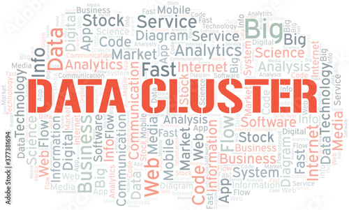 Obraz premium Data Cluster vector word cloud, made with text only.