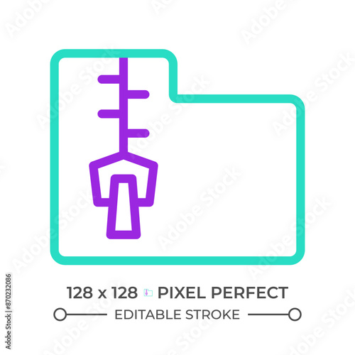 Obraz premium Data compression two color line icon. Zip file bicolor outline symbol. File system management. Compressed digital folder. Duotone linear pictogram. Isolated illustration. Editable stroke