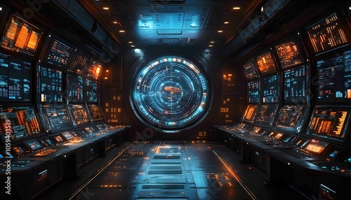 Fototapeta premium Data-Driven Business Command Center, futuristic command center filled with...