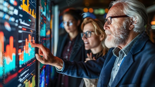 © thanatpong, Obraz premium Data-Driven Decisions: A team of business professionals analyze data on a large screen, demonstrating their commitment to data-driven decision-making in a modern, tech-savvy environment.