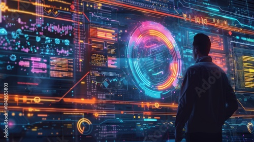 © Pat J., Obraz premium Data engineer setting up data pipelines, with digital infrastructure visuals