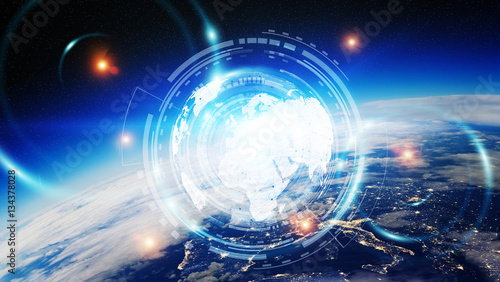 © sdecoret, Obraz premium Data exchange and global network over the world 3D rendering