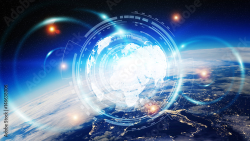 © sdecoret, Obraz premium Data exchange and global network over the world 3D rendering