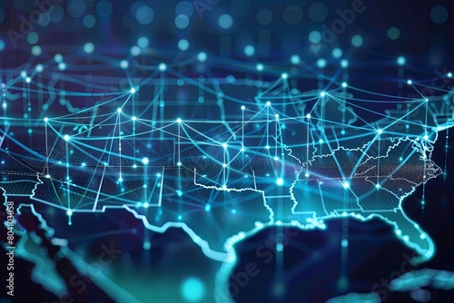 Obraz premium Data Exchange: US Map in Abstract Global Communication Web