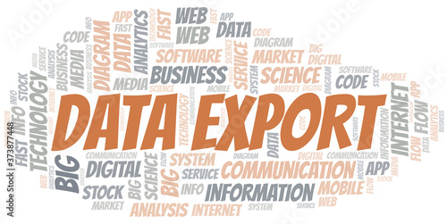 © sharafmaksumov, Obraz premium Data Export vector word cloud, made with text only.