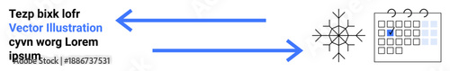 Fototapeta premium Data flow, planning, scheduling, winter , timelines, information processing. Arrows showing transition from text to snowflake and calendar. Data flow and planning concept