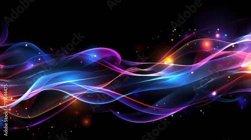 © @_ greta, Obraz premium data flow wave background. Futuristic blue particle wave