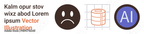 © robu_s, Fototapeta premium Data management, artificial intelligence, emotions, machine learning, technology, human-computer interaction. Sad face, stacked database graph AI label. Data management and artificial intelligence