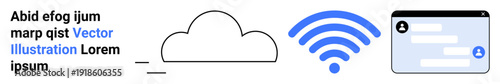 Obraz premium Data management, wireless technology, cloud storage, digital messaging, information exchange, connectivity. A cloud icon, wireless symbol and interface window. Cloud storage and wireless technology