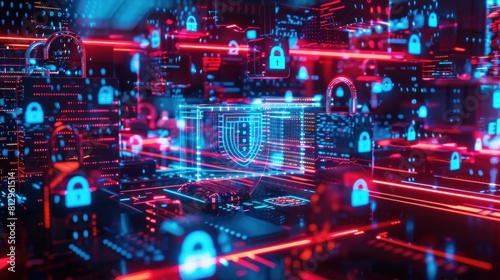 © @desy, Obraz premium Data Network and Digital Communication Concept,Abstract Background