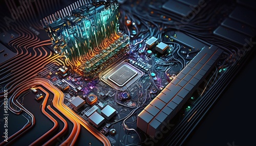© Rodrigo, Fototapeta premium Data Processing Capacity of a Very Powerful CPU Generated by AI