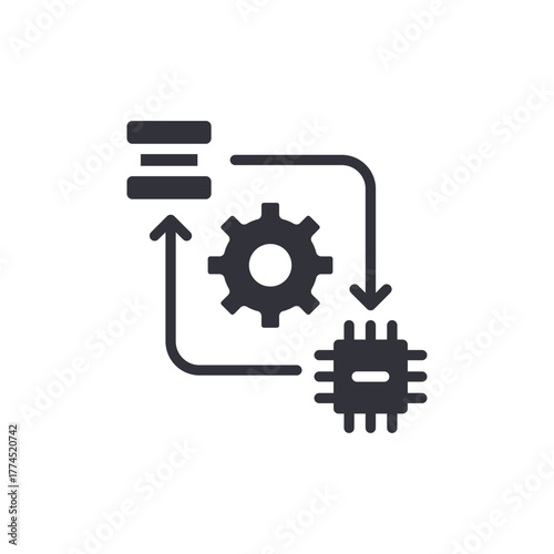 © Upnowgraphic Studio, Obraz premium Data Processing Cycle Icon Cogwheel Microchip Diagram