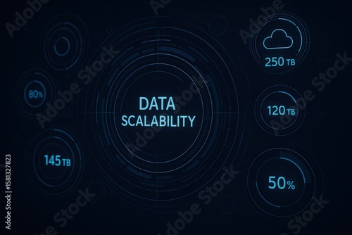 © Cre-AI-Tor , Obraz premium Data Scalability Interface With Cloud Metrics On Dark Background
