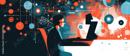 © Cathynew, Obraz premium Data scientist coding with machine learning algorithms, using technology and data visualization. scene conveys sense of innovation and analytical thinking